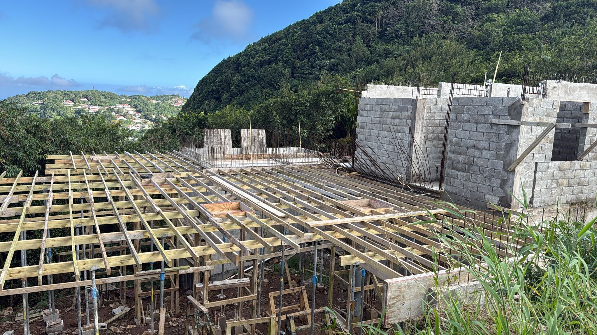 Building a retaining wall allows for the creation of an area of flat ground. This is a rare commodity on Saba and particularly on The Mountain, where our home will be. This parcel of land will serve as the base for the ground floor, which includes a bedroom and ensuite, a laundry room, a storage room, and also a room for all the technical installations, including pumps, heaters and electrical. The main entrance will be built one floor above, to capitalize on the sloped land.